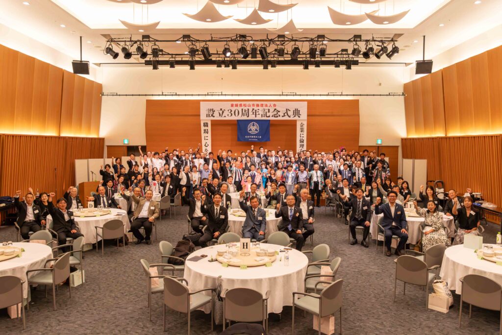 8月29日に松山市倫理法人会の30周年記念式典があり、出席者は100名以上と盛大に開催されました!