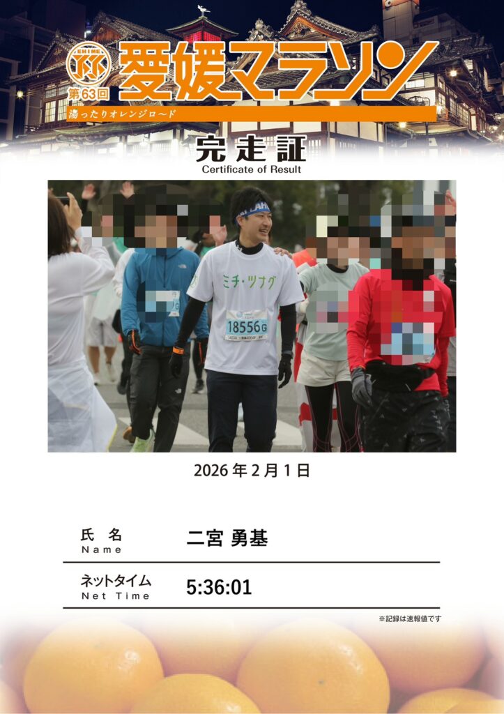 2月1日に開催された愛媛マラソンに二宮が参加しました!